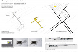 Als Teil des Wettbewerbs für die Neukonzeption der Ausstellung waren Ideen für ein neues Eingangs- und Empfangsgebäude zu entwickeln. Vom Eingangsgebäude aus sollte den Besuchern bei ihrer Ankunft – mit Blick auf das Gesamtensemble – der Eindruck und die Atmosphäre eines Flugplatzes vermittelt werden. Neben den üblichen Servicebereichen, Sanitäranlagen und einem Seminarraum war es wichtig, dass die Besucher bereits im Eingangsgebäude auf die Museumsthematik eingestimmt werden.